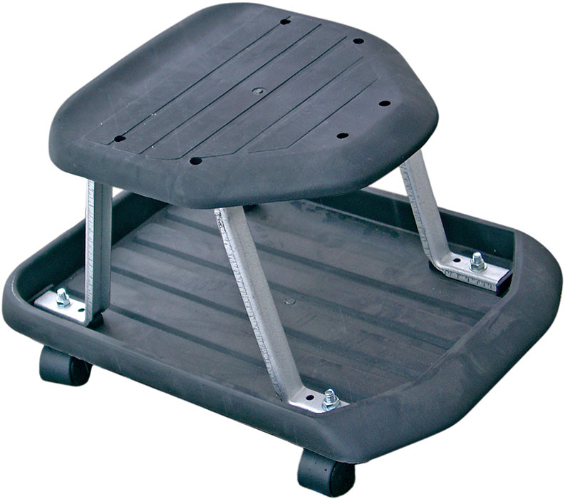 | • vassoio portautensili sotto il sedile • in plastica • colore nero • con 4 rotelle Ø 40 mm • dimensioni: - vassoio: 320 x 450 mm - seduta: 290 x 390 mm - altezza da terra seduta: 280 mm • carico massimo 150 kg • peso 2,2 kg |