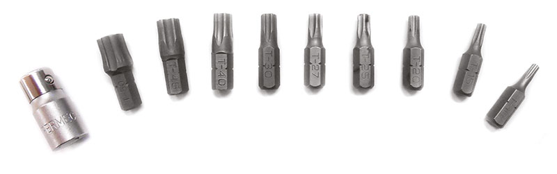 SET 23 PEZZI INSERTI TORX PLUS E 5 PUNTE CON FORO