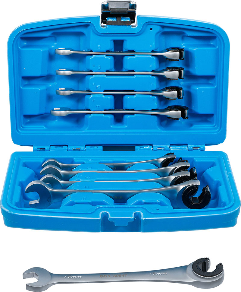 SET 9 PEZZI, CHIAVI COMBINATE A CRICCHETTO PER RACCORDI TUBI, 8 - 17 MM