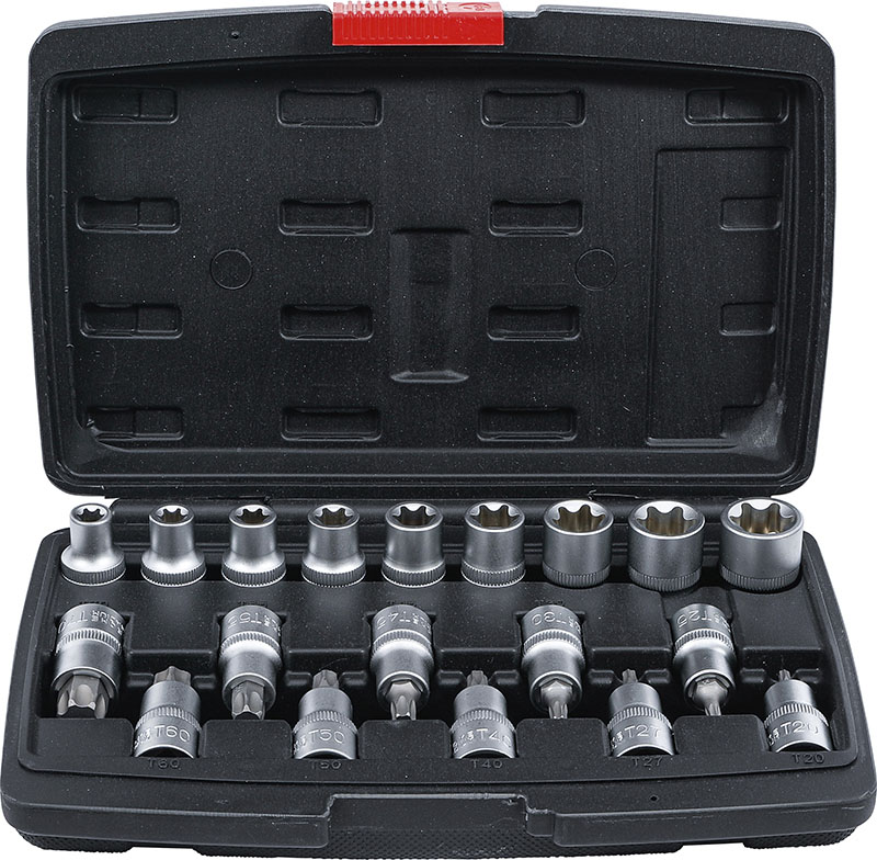 SET 19 PEZZI, BUSSOLE TORX FEMMINA E BUSSOLE CON INSERTI TORX, ATT. 1/2”