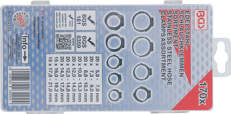 | BGS14115 | KIT 170 PZ, FASCETTE STRINGITUBO ACCIAIO INOX | 1 |