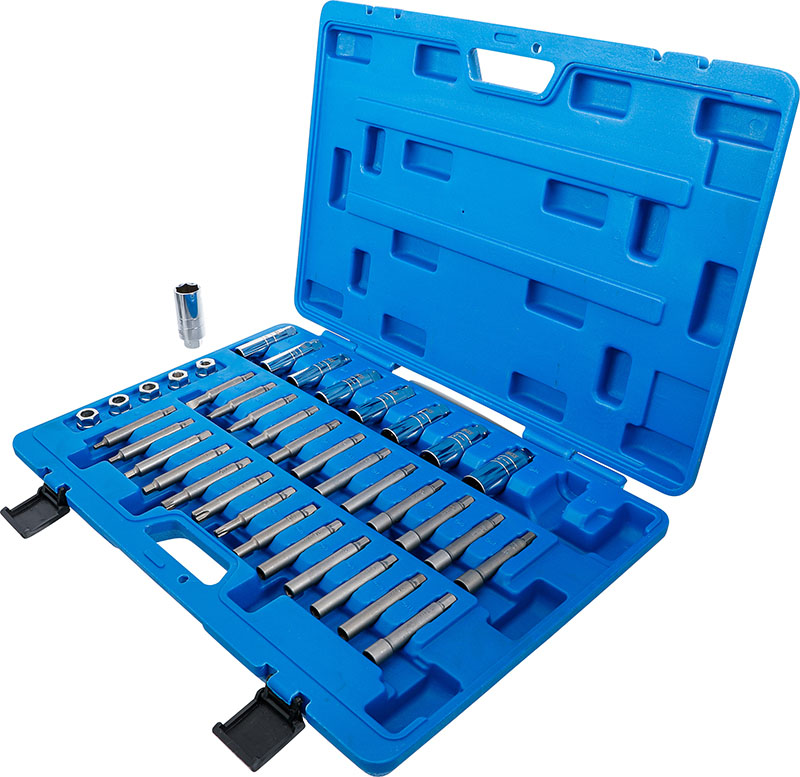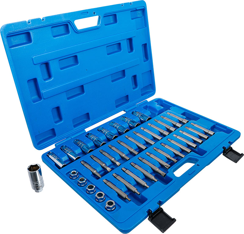 • comprende i seguenti utensili: • bussola a esagonale per allentamento 14-16 - 17 - 18 - 19 - 21 - 22 - 24 e 27 mm • bussola XZN per allentamento 10,5 - 12.5 - 14.0 e 14.5 mm • bussola taglio per contro supporto da 4 a 5.2 - 6 - 6.3-7 - 8 - 9 - 10 e 12 mm • inserti profilo a D per contro supporto 5 e 10 mm • bussola esagonale per contro supporto 8 - 9 - 10 e 11 mm • inserti esagonali per contro supporto 5 - 6 - 7 e 8 mm • inserti taglio per contro supporto 3 - 3.5 e 4 mm • inserto XZN M12 • inserti TORX per contro supporto TX50 e TX60 • peso 6,5 kg