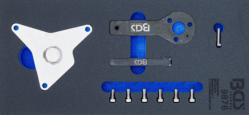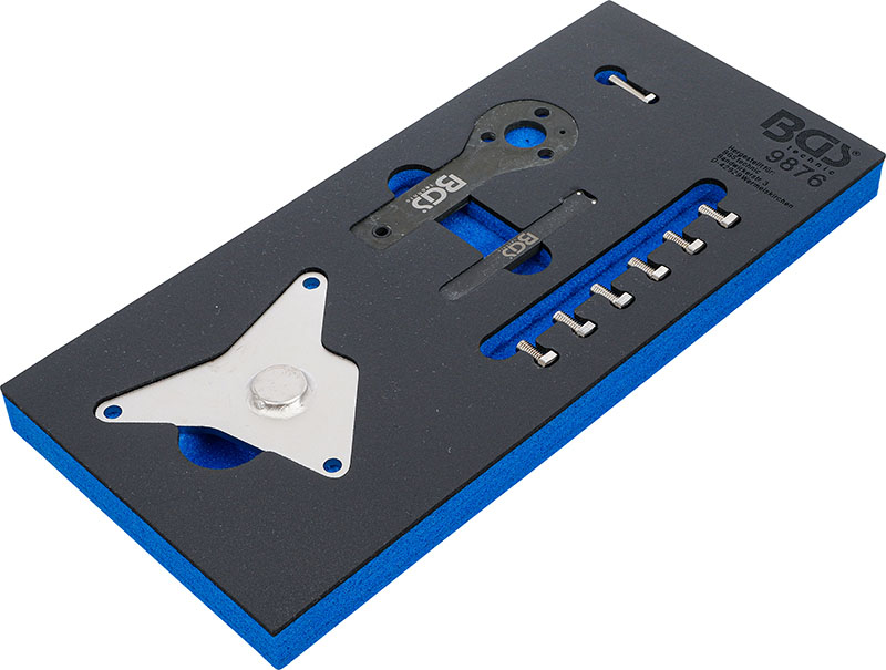 • per il controllo e la regolazione della messa in fase del motore quando si sostituisce la cinghia dentata di distribuzione • per: - Alfa Romeo Giulietta, Mito - Fiat Punto, Punto Evo 1.4 (Turbo) MultiAir (105/135/163 / 170PS) • per codici motore: 940A2.000 / 940A2.000 / 955A8.000 / 955A8.000 940A2.000 / 955A8.000 / 955A2.000 / 955A7.000 955A6.000 / 955A8.000 • comprende: - utensile fase albero a camme con 3 viti di fissaggio, per uso come OEM 2000034400 - utensile di bloccaggio albero motore con. 4 viti di fissaggio, per uso come OEM 2000004500 - utensile di regolazione della puleggia tenditrice, per uso come OEM 1860987000 • peso 950 g • dimensioni: (lunghezza x profondità x altezza) 189 x 408 x 32 mm