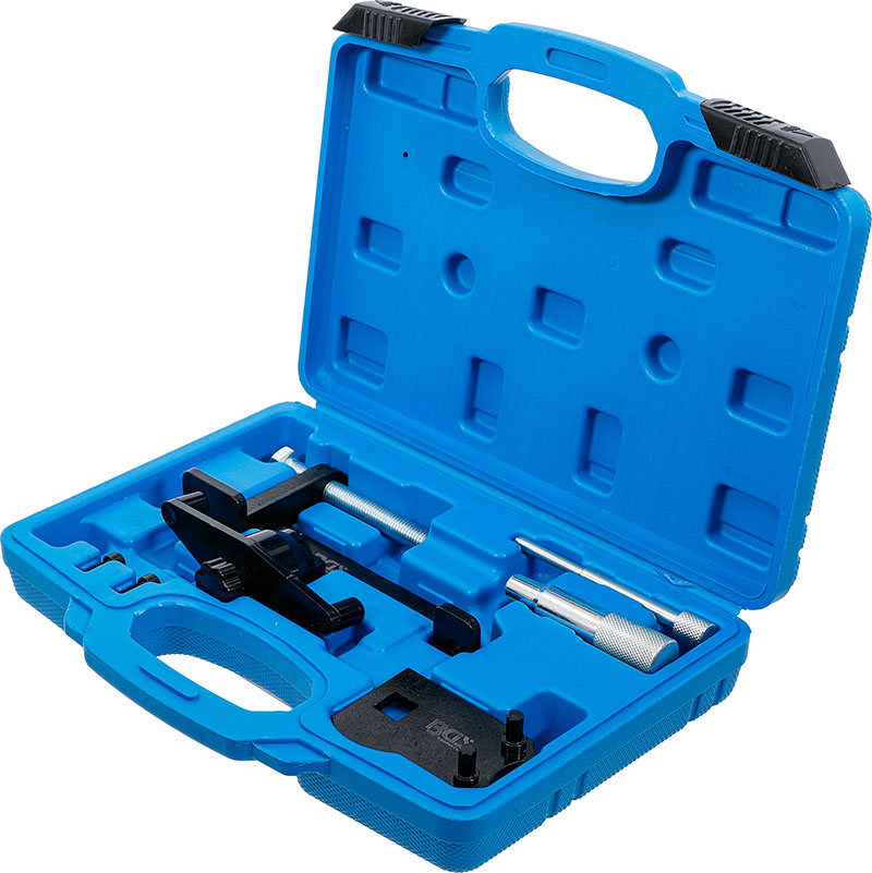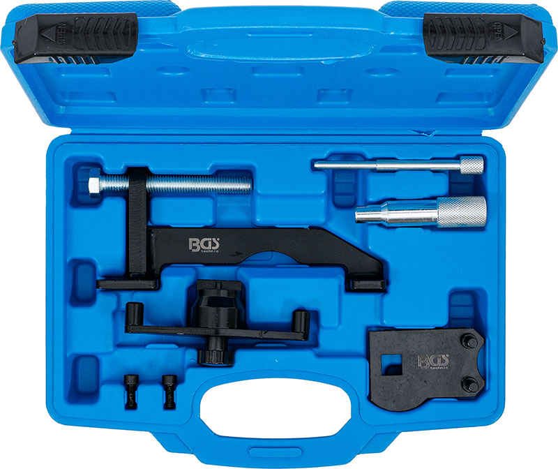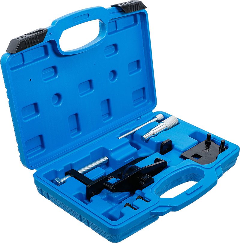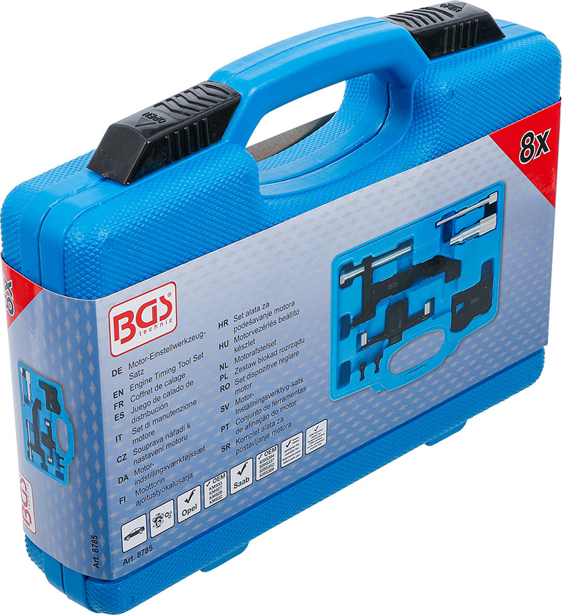 • per l’impostazione della messa in fase • idoneo per i seguenti modelli Opel / Vauxhall§ - Vectra 2.0 Turbo Diesel - Sintra 2.2 Turbo Diesel - Zafira 2.0 Turbo Diesel - Frontera 2.2 Turbo Diesel - Saab 9-3 2.2 Turbo Diesel • codice motore: X20DTL X20DTH X22DTH Y22DTR • comprende i seguenti utensili: - chiave di regolazione con gruppo staffa per uso come OEM KM933 / Saab 8395394 - spina di fasatura pompa di iniezione per uso come OEM KM927 / Saab 8395337 - spina di impostazione albero motore per uso come OEM KM929 / Saab 8395352 - piastra di impostazione albero a camme per uso come OEM KM932 / Saab 8395386 • peso 1,9 kg