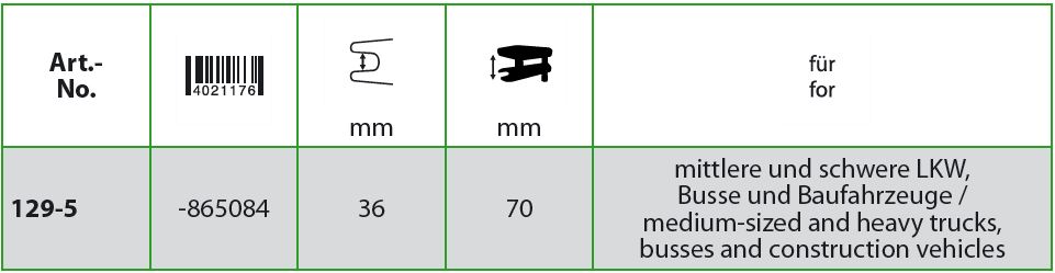| KK129-5 | 15 | 36 | 70 | ESTRATTORE PER GIUNTI SFERICI PER AUTOCARRI PESANTI 36-70MM | 1 |